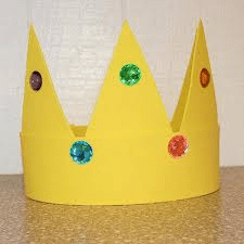 This is a really easy craft to create with the kids. First, using scissors cut a design around one side of the crown. It can be in points or scallop but you can use scrapbook scissors that cut the design. Next, using glue or tape, secure the paper together in a round shape that will fit your child’s head. Let your child color or put stickers, jewels on the crown to make it their own!