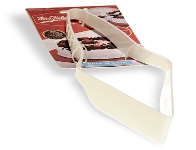 We love to bake cakes a lot or buy them for birthdays but cutting them can sometimes be a pain. I have kids saying why is their cake piece bigger then mine and sometime it can get on your nerves. I was so happy to get a box in the mail from Love Cooking Company and they sent me a Mrs. Fields Slice N Easy Cake Cutter. This could not have come at a better time.