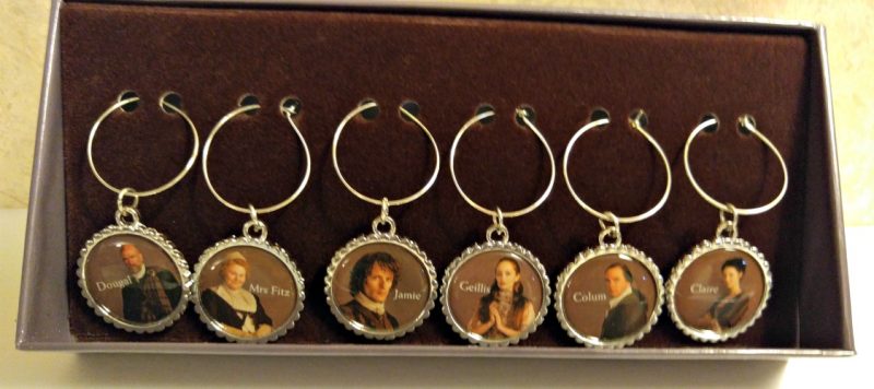 Outlander Character Wine Charms – Each charm features a fan-favorite character from the show, including Jamie, Claire, Mrs. Fitzgibbons, Colum, Dougal, and Geillis.