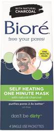 The natural charcoal [in the mask] is activated when it comes in contact with water and heats up in an instant, drawing out impurities and deep down dirt and oil from the poresleaving a brighter complexion.