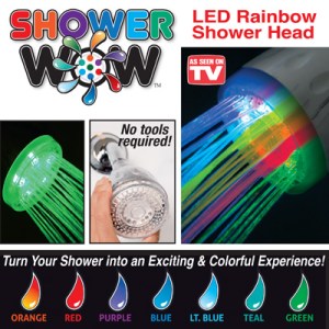 Shower Wow is the LED rainbow shower head. Quick & easy to install. No hardware or batteries required. Transitions Automatically Between 7 Vibrant Colors. It was really easy to install into our shower. We did have to wrapped some plumbers tape around the neck of the shower so it did not leak then screwed on the Shower Wow. We turn the light off and start of the shower and it look like we had a party going on in the bathroom. We had to much fun and I like that the little kids did not want to take a bath no more and they only take showers now. The Shower Wowdid stop working for almost a day or so but then came right back on and has worked ever since then.